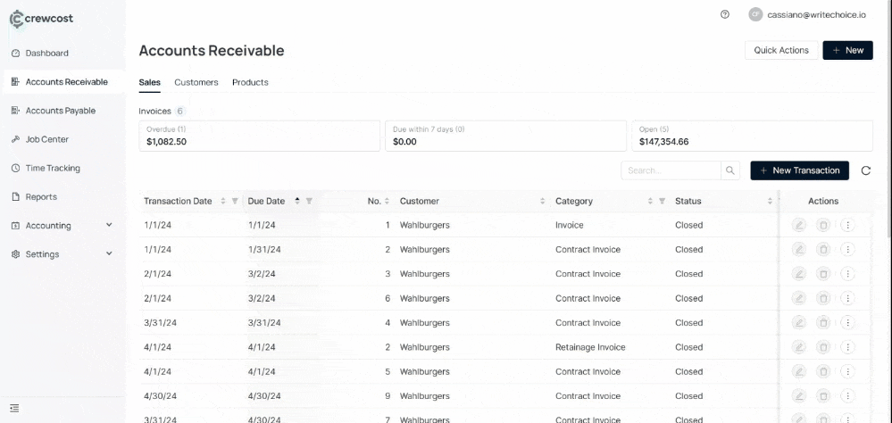 Create an Invoice: How to generate customer invoices, assign them to jobs, and send them for payment. Covers progress billing, fixed-fee billing, and retainage when applicable.